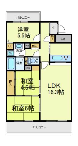 和室 4.5畳 洋室 5.5畳 LDK 16.3畳 |