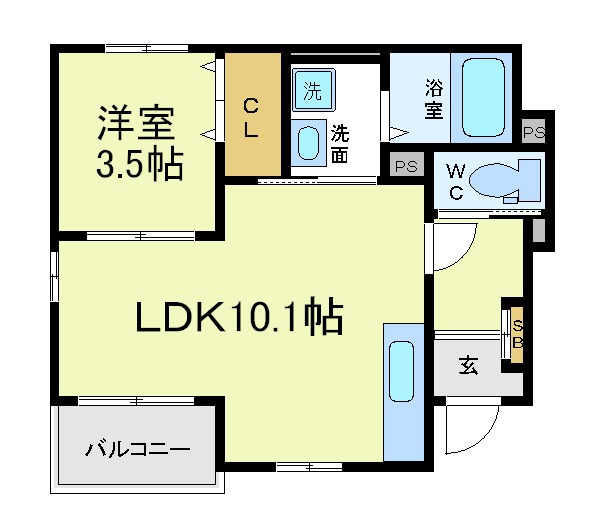 間取り詳細 | 洋室 3.5畳 、 LDK 10.1畳 |