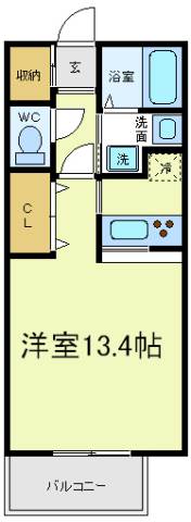 | ワンルーム | 洋室 13.4畳 | 34㎡ |