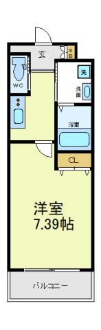 | 1K | 洋室 7.39畳 | 25.11㎡ |