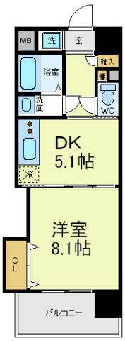 | 間取り詳細 | DK 5.1畳 、 洋室 8.1畳 |