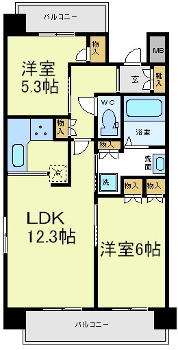 | 間取り詳細 | LDK 12.3畳 、 洋室 6畳 、 洋室 5.3畳 |