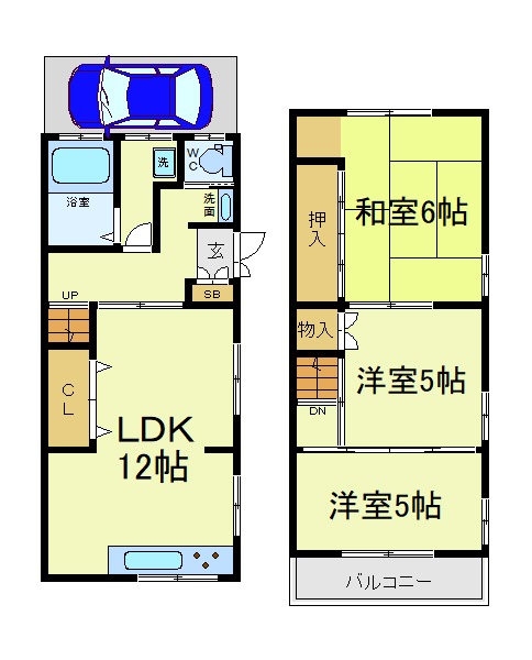 | 間取り詳細 | LDK 12畳 、 洋室 5畳 、 洋室 5畳 、 和室 6畳 |