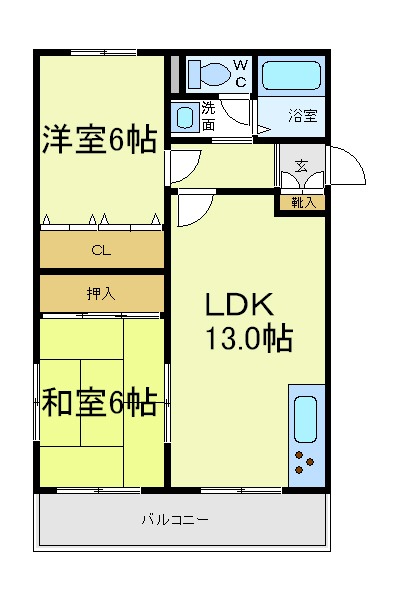 | 間取り詳細 | LDK 13畳 、 洋室 6畳 、 和室 6畳 |